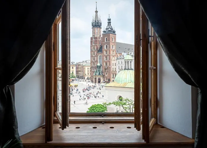 Apartmán Main Square 18 View 1 nabízí rychlý přístup k Radniční věž a obsahuje výhledy na město. Sukiennice je 5 minut jízdy od ubytování, a Krakovský rynek je 5 minut jízdy autem.
